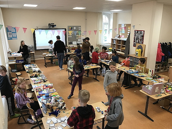 Andere haben am Ende über 30 € Plus gemacht und mein Freund hat 12,80 € Plus gemacht, aber es war trotzdem toll. Jeder hatte etwas anderes dabei, manche hatten Legotüten, andere haben Puppen, Spiele oder Kuscheltiere mitgebracht. Man konnte in jede Klasse. Am besten fand ich die 3a und 1a. Ich habe eine Puppe, eine Katze und vier Filly Pferde für meine Schwester gekauft.